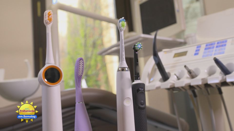 SAT.1-Reporterin Kyra Baltrusch präsentiert den Zahnbürsten-Check. Welches Modell ist wofür am besten geeignet und was macht den Unterschied am Bürstenkopf? Zahnärztin Julia von Wolff gibt die Antworten: